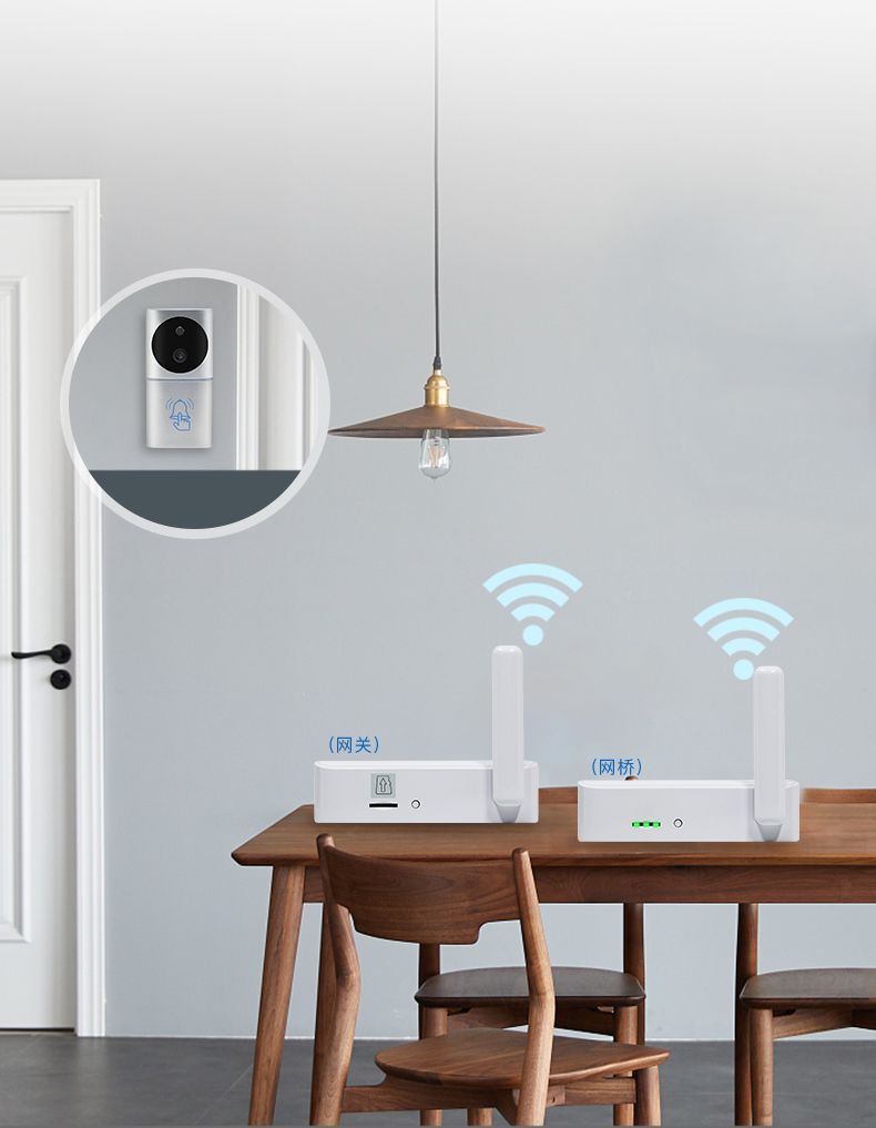 嘉松无线网桥/网关/中继器,可分别搭配嘉松无线可视门铃、电子猫眼、高清摄像头使用;拥有一台无线网关,搭配的电子产品网络都稳定不掉线,独立的存储功能(TF卡),录像存储安全有保障,同时能省去每年购买的云服务的存储功能的费用,且低功耗非常省电,你值得拥有!